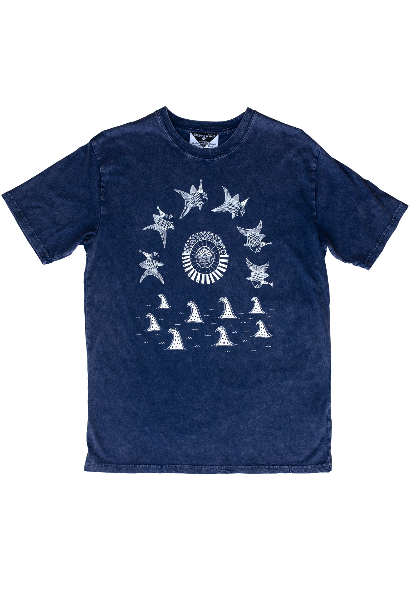 100% combed cotton stonewash t-shirt (140 GSM) produced under ethical working conditions and hand-printed in New Zealand using environmentally friendly, organic inks.