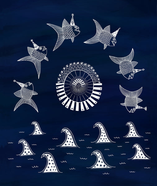 “If we leap out of the water enough they will not get wet”, a bright young fish named Walter said with conviction, and conviction is catching. And so they constantly leapt from the ocean in a rather beautiful and hypnotic formation – I cannot say for sure whether the hats did or did not get wet as there was never time to stop and check.