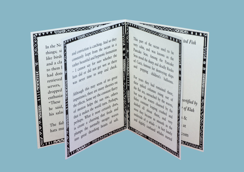 In the North of Klah you can find many things; six legged horses, trees shaped like birds, and birds shaped like trees - and a clan of fish in wizard hats, gifted to them by a travelling wizard. The fish had done him a good deed after they retrieved his favourite pair of salad servers, which he had accidentally dropped off the side of his boat while enthusiastically making his lunch. “These hats will change the world” he said, then vigorously tucked into his salad with no further explanation.