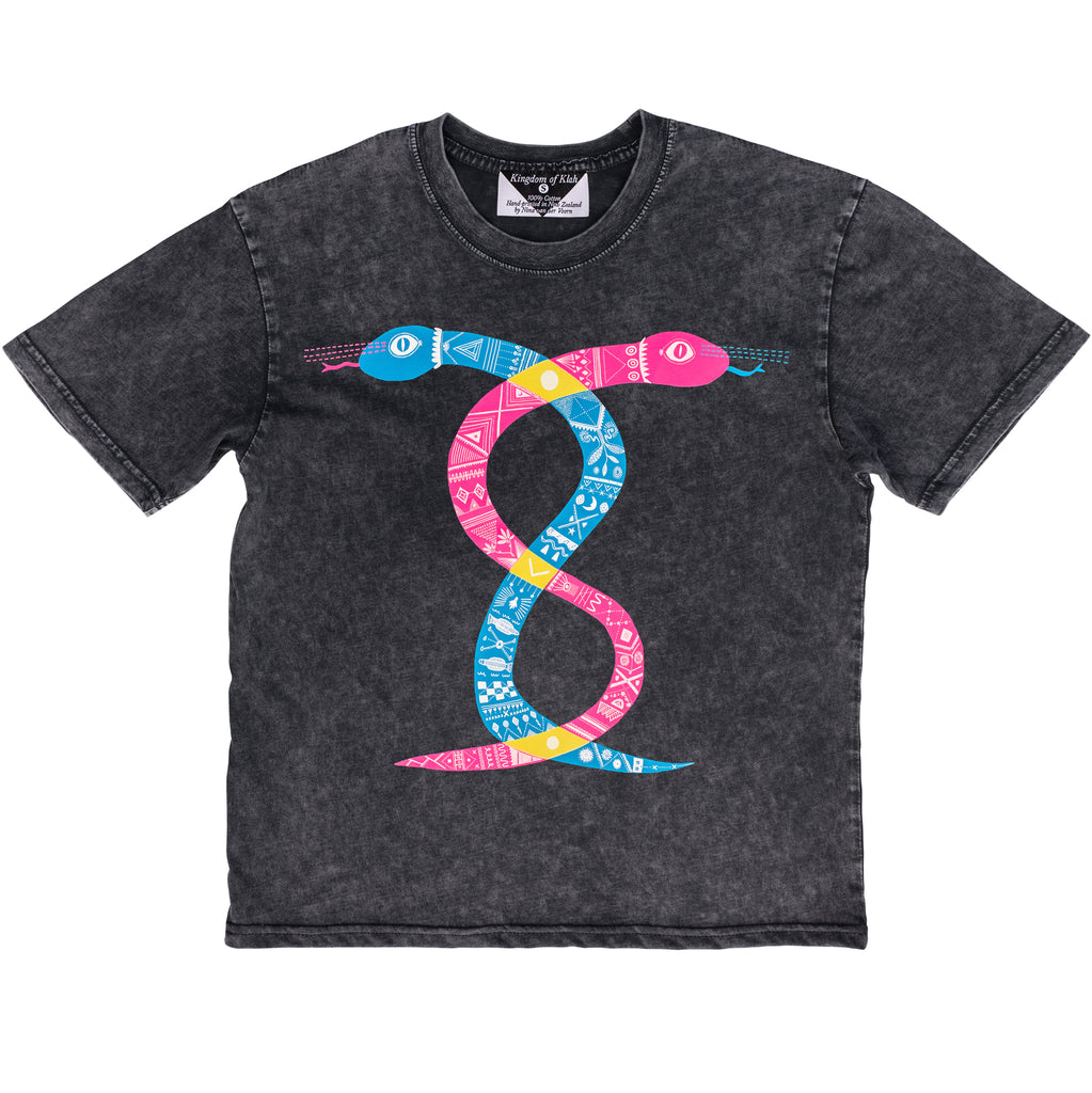 The Infinity Snakes of Time Women's Stonewash Monarch Tee, Limited Edition Fluro