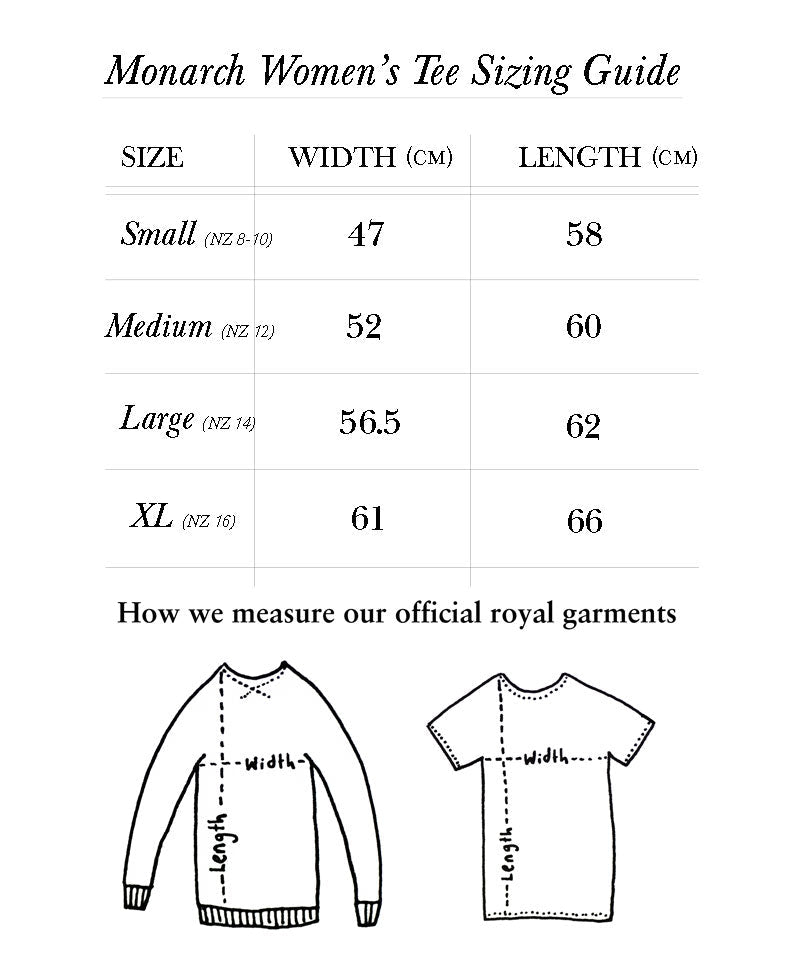 100% combed cotton stonewash crew-neck tee (140 GSM), produced under ethical working conditions and hand-printed in New Zealand with waterbased inks. This garment is designed to be hip length with a loose fit in the body.