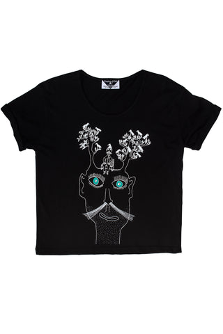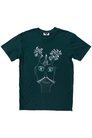 The man loved trees. He thought about them constantly, and one day he discovered two of them growing out of his head. Soon after, a family of birds arrived with their interpreter, Mr Maximillan P. Symonds. Mr Maximillan P. Symonds’ grandmother had been a crow. He asked the man if they might set up residence. The man was lonely and felt an affinity with Mr Symonds, and so he agreed.