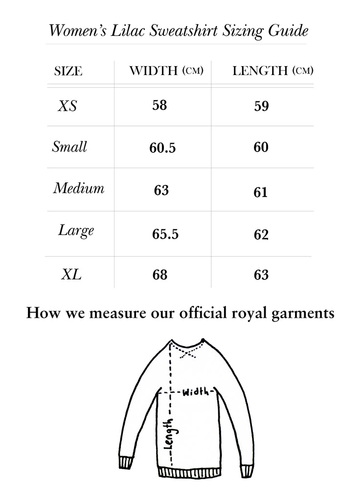 100% cotton handprinted sweatshirt with recycled poly fleece lining (320 GSM) with drop shoulder and neck and sleeve cuff ribbing. Produced under ethical working conditions and printed using environmentally friendly, organic inks.