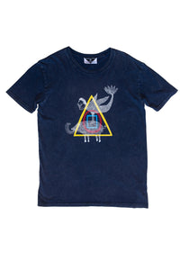 Kingdom of Klah Handprinted Stonewash Blue Men's Tshirt Mervyn Sagetusk Design