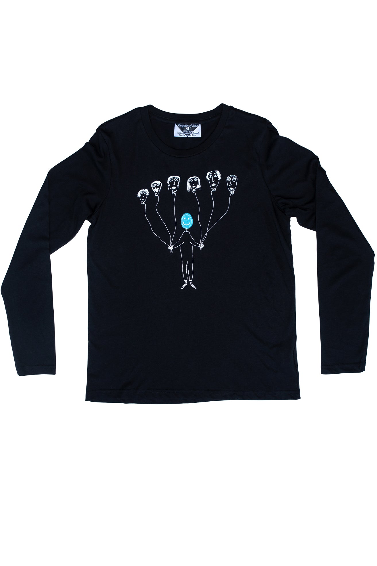 Handprinted longsleeve tee (130 GSM) produced under ethical working conditions & printed in New Zealand using environmentally friendly, organic inks. Relaxed fit. Sizing guide in image.