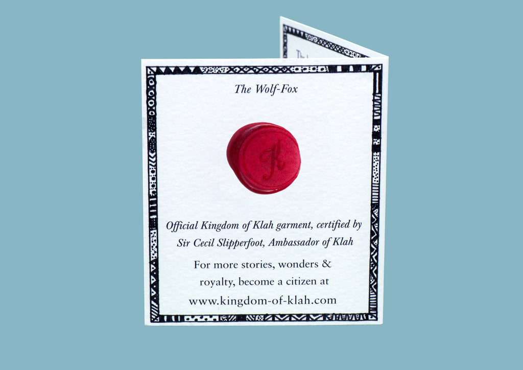 Comes with the Wolf-Fox story-card and the Klah certified seal of authenticity. Sizing guide in images.